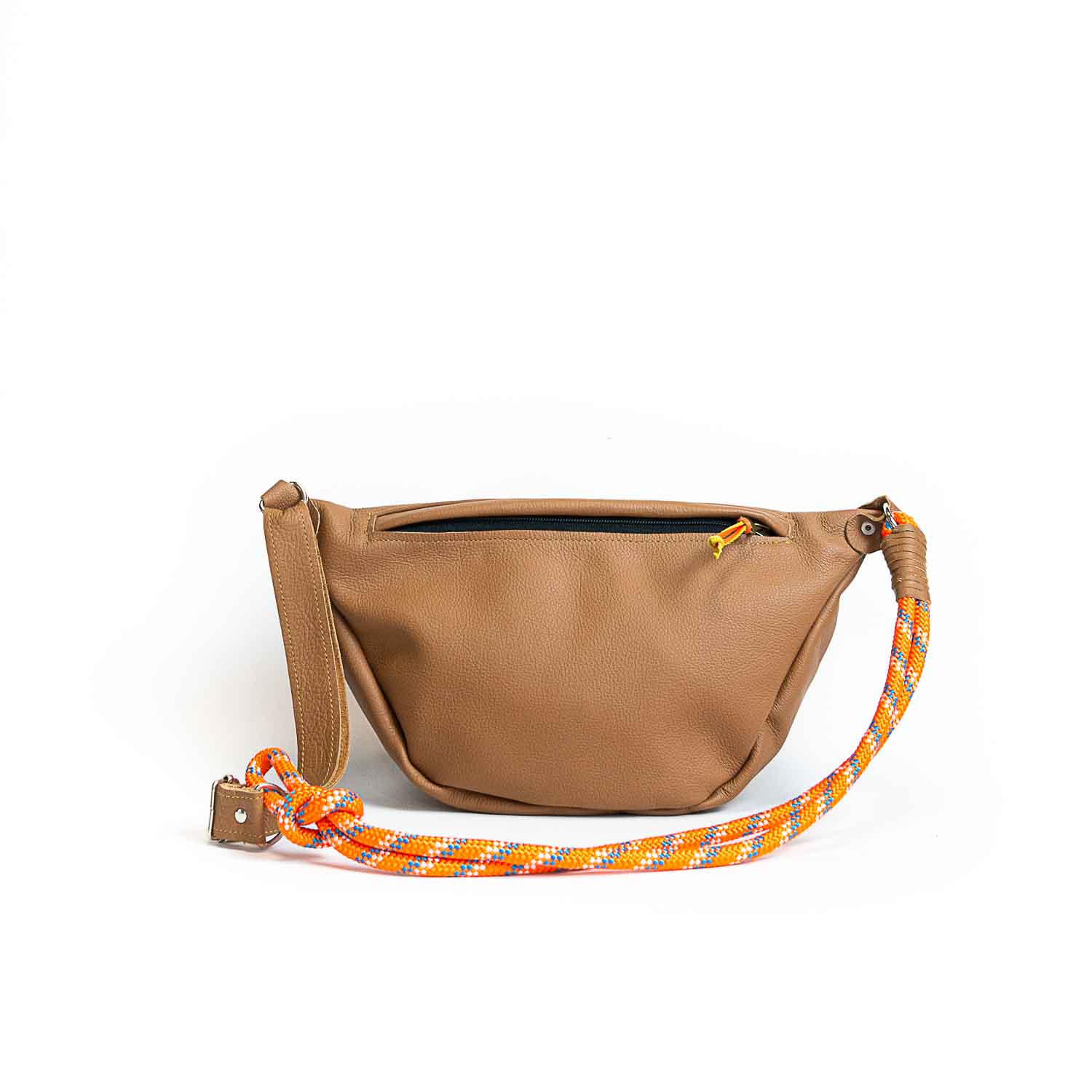 Este bolso de piel de curtición vegetal en tono camel destaca por su estilo atemporal y por su elaboración hecha a mano. Confeccionado con materiales de alta calidad, este accesorio combina estilo y durabilidad. Sus asas resistentes, hechas con cuerda de escalada, están diseñadas para soportar el paso del tiempo, garantizando una larga vida útil. Perfecto para quienes buscan un bolso funcional y con estilo, este modelo ofrece espacio y comodidad para tu día a día, mientras añade un toque elegante a cualquier look. Añade este bolso único a tu colección y disfruta de la artesanía gallega en cada detalle.