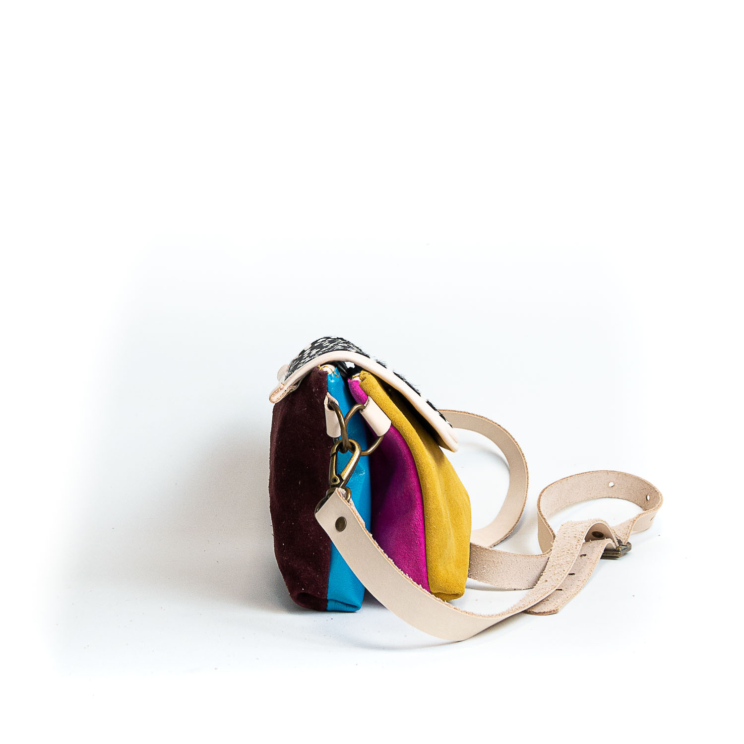 Este bolso de piel de curtición vegetal ha sido diseñado pensando en la funcionalidad y el estilo. Su estructura convertible te permite cambiar entre riñonera y bandolera, mientras que sus cuatro caras intercambiables te brindan la opción de lucir un bolso diferente cada día. Hecho a mano y equipado con mosquetones laterales y una hebilla ajustable, este bolso es tan versátil como práctico. ¡Incorpora este accesorio único a tu look diario y disfruta de su adaptabilidad!