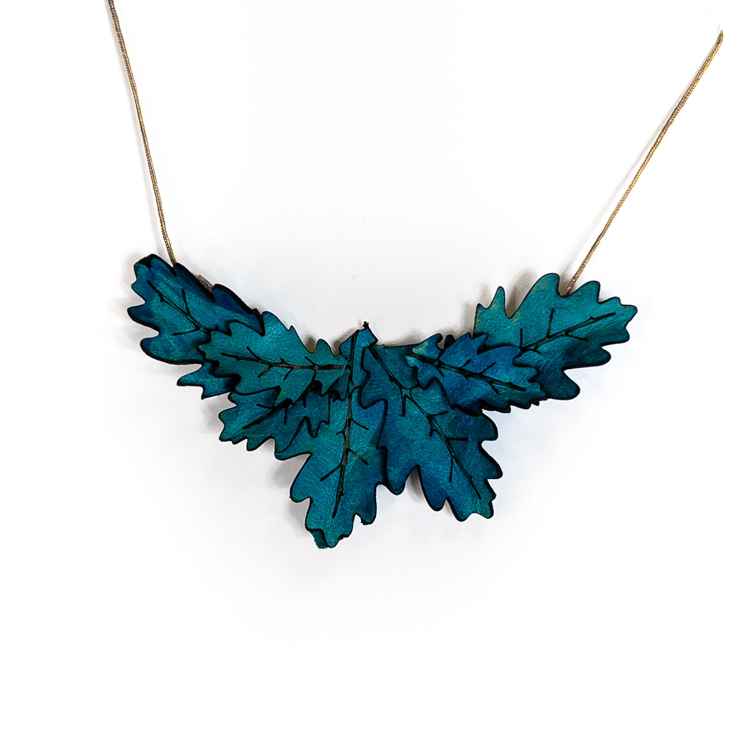 Collar hecho a mano en piel sostenible – Hoja de Roble