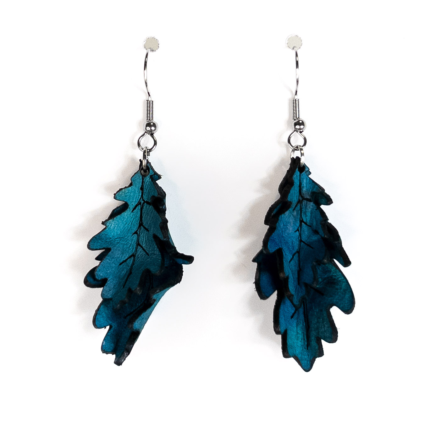 Descubre nuestra exclusiva colección de pendientes de piel de curtición vegetal en forma de hojas de roble. Cada par ha sido diseñado con esmero y elaborado a mano utilizando técnicas artesanales. La piel de curtición vegetal ha sido cortada con precisión láser y teñida a mano, logrando una forma y color perfectos. Estos pendientes únicos combinan la belleza natural de las hojas con una elaboración experta, creando accesorios elegantes y sostenibles. Explora nuestra selección y añade un toque de estilo y conciencia ecológica a tu look.